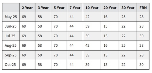 30일(현지시간) 온라인카지노 신용카드 랭킹가 발표한 분기 국채 발행 계획(QRA)을 보면, 8~10월 이표채(쿠폰채)와 변동금리채(FRN) 입찰 규모는 직전 3개월 동안과 모두 같았다.