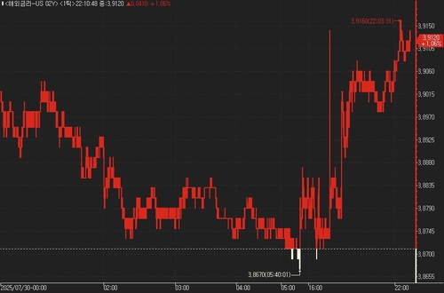 통화정책에 민감한 2년물 금리는 같은 기간 3.10bp 상승한 3.906%를 가리켰다.
