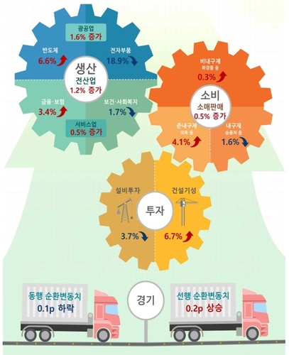 전산업생산 1.2%↑·소매판매 0.5%↑·설비투자 3.7%↓