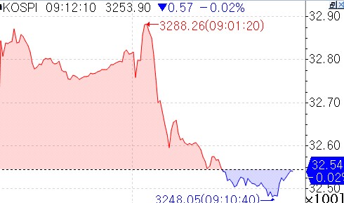 이날 연합인포맥스 신주식종합(화면번호 3536)에 따르면 오전 9시 2분 기준 코스피는 전 거래일보다 13.58포인트(0.42%) 상승한 3,268.05에 거래되고 있다. 장 초반 연고점을 경신해 3,228.26을 기록하기도 했다.