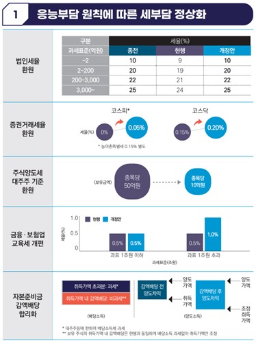아울러 윤석열 정부에서 이뤄진 감세정책을 되돌리는 조치로 법인세와 증권거래세, 주식 양도소득세 대주주 기준 환원을 추진한다.