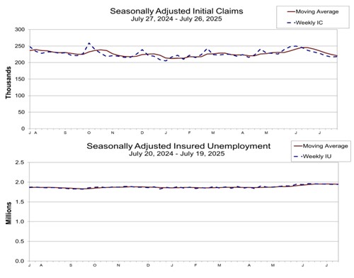 변동성이 덜한 4주 이동평균 실업보험 청구 건수는 22만1천건으로 전주보다 3천500건 줄었다.