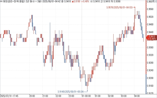 통화정책에 민감한 2년물 금리는 3.9530%로 같은 기간 1.60bp 상승했다.