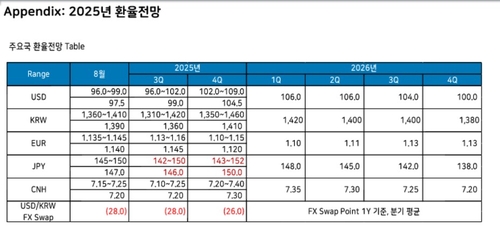 8월 달러-원 환율 전망치를 1,360~1,410원 범위로 제시했다.