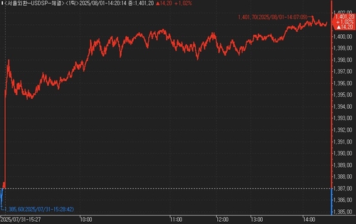 장중 고점은 오후 2시 7분에 기록한 1,401.70원이다.