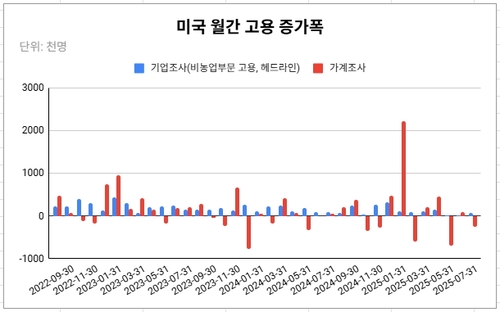 (서울=연합인포맥스) 김성진 기자 = 미국의 지난 7월 고용보고서에서 고용주 대상 조사(기업조사, Establishment Survey)와 가계조사(Household Survey)는 모두 부진한 결과를 드러냈다.