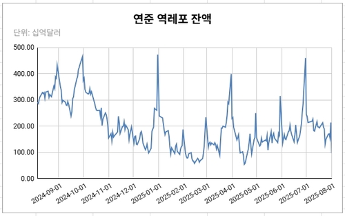 (서울=연합인포맥스) 김성진 기자 = 미국 금융시스템의 초과 유동성 가늠자로 여겨지는 연방준비제도(연준ㆍFed)의 역레포 잔액이 1천억달러선 밑으로 내려섰다.
