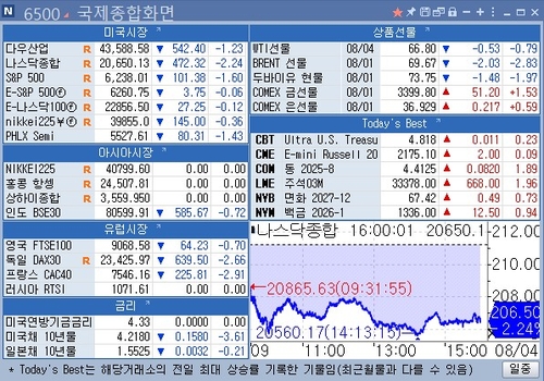 △뉴욕증시의 3대 주가지수는 급락 마감. 7월 미국 비농업 부문 고용이 예상치를 밑돌며 악화한 데다 5월과 6월 수치가 대폭 하향 조정되면서 증시가 충격을 받아. 미국의 제조업 업황은 7월에 하락하며 5개월 연속 위축 국면에 머물러.
