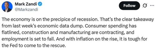 잔디 이코노미스트는 3일(현지시간) 소셜미디어 엑스(X·옛 트위터)에서 "지난주 경제지표 발표에서 분명히 드러난 사실"이라며 이같이 밝혔다.