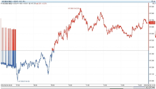 다만, 한때 147.050엔까지 떨어진 달러-엔 환율은 점차 낙폭을 되돌려 증시 개장 시간에 맞춰 반등했다. 오전 장 중엔 0.34% 오른 147.900엔을 터치했다.