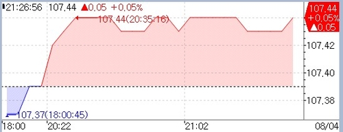 4일 연합인포맥스에 따르면 3년 국채선물은 오후 9시 46분 현재 정규장 대비 5틱 오른 107.44를 기록했다.