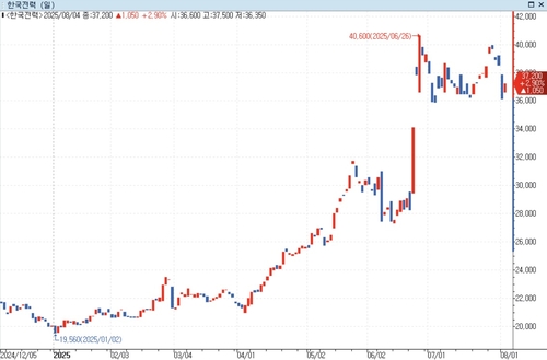 한전의 주가는 전 거래일에 3만7천200원에 마감했다. 올해 들어 85.5% 상승했다. 애널리스트들의 목표주가 평균은 4만3천600원으로 형성됐다.