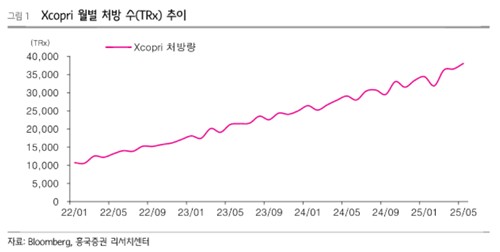 위해주 한국투자증권 연구원은 "2022년 이후 분기 월평균 처방건수는 약 2천건씩 증가했다는 것을 고려하면 이번 4~5월 월평균 처방건수 3천건 증가는 이례적"이라고 평가했다.