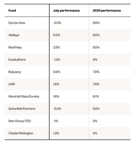 (서울=연합인포맥스) 윤시윤 기자 = 7월 강세장에서 시타델 등 대형 헤지펀드들이 플러스 성과를 기록했지만, 대규모 퀀트 팀을 보유한 운용사들은 비교적 부진한 실적을 기록했다.