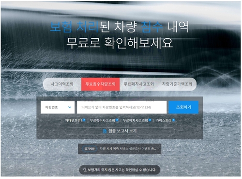 보험개발원은 중고차 구매 시 침수차량으로 인한 소비자 피해예방을 위해 '카히스토리' 서비스를 무료로 제공하고 있다. 무료침수차량 조회에서 차량번호 또는 차대번호 입력만으로 침수차량 여부 및 침수 일자를 확인할 수 있다.