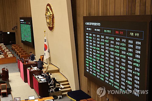 (서울=연합인포맥스) 온다예 기자 = 공영방송의 지배구조 개편을 골자로 한 '방송 3법'(방송법·방송문화진흥회법·한국교육방송공사법 개정안) 가운데 방송법 개정안이 5일 국회 본회의를 통과했다.