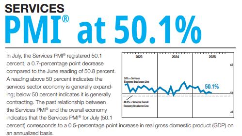 (뉴욕=연합인포맥스) 진정호 특파원 = 미국의 7월 서비스업 경기가 확장 국면은 지켰으나 시장 예상보단 악화했고 확장 속도도 느려졌다.