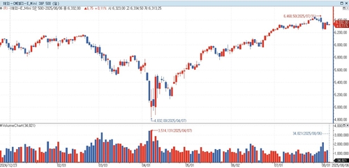 연합인포맥스 지수선물 통합화면(화면번호 6520)에 따르면 한국 시각으로 오전 11시10분 기준 E-미니 S&P500 지수 선물은 전장 대비 0.11% 오른 6,332.00에 거래됐다.