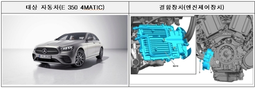 (서울=연합인포맥스) 한종화 기자 = 벤츠의 E350 차종에서 주행 중 시동이 꺼질 위험이 있어 메르세데스-벤츠코리아에서 자발적 시정조치(리콜)에 들어갔다.