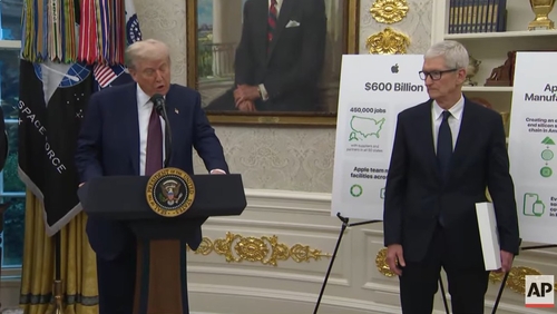 트럼프 대통령은 애플의 대규모 투자 결정에 대해선 "미국에서 판매되는 아이폰이 미국에서 제조되도록 하는 궁극적인 목표를 향한 중요한 진전"이라고 평가했다.