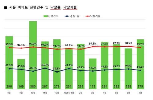 서울 낙찰가율 95.7%로 하락…2월 이후 최저