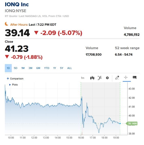 이에 대한 실망으로 아이온큐 주가는 시간 외 거래에서 5% 하락했다.