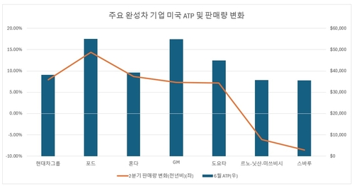 판매량 수치에서 성과로 이어졌다. 현대차[005380]는 올해 상반기에 미국에서 47만6천641대의 차량을 판매했다. 전년보다 10.5%가 늘었다. 같은 기간 기아[000270]의 판매량은 41만6천511대로 전년보다 7.8% 확대했다. 합산으로 역대 상반기 기준 가장 많은 수치다. 판매 호조는 7월까지 지속했다.