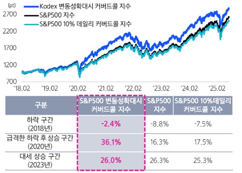 다만 변동성이 확대하는 시장 불안 상황에만 조건부 커버드콜 전략을 통해 수익을 방어하는 게 특징이다.