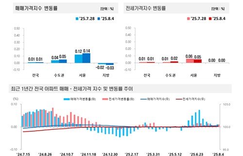 한국부동산원은 7일 발표한 8월 첫째 주 주간 아파트가격 동향에서 서울 아파트 매매가격이 전주 대비 0.14% 상승했다고 밝혔다.