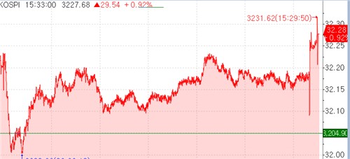6일 코스피는 전 거래일보다 29.54(0.92%) 오른 3,227.68에 거래를 마쳤다.