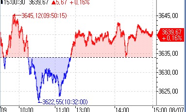 중국의 7월 수출이 시장 예상치를 웃돌았다는 소식이 지수에 상승압력을 가한 것으로 풀이된다.