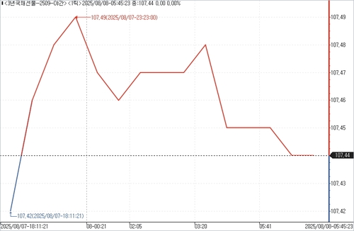 8일 서울채권시장에 따르면 3년 국채선물은 야간 거래에서 전일 주간 거래 종가 대비 2틱 하락한 107.44에 마감됐다. 외국인은 5계약 순매도했고, 개인은 5계약 순매수했다. 금융투자는 거래가 없었다.