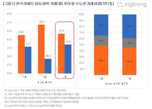 이런 흐름은 특히 수도권에서 두드러졌다. 2025년 7월 수도권 아파트의 상승 온라인카지노 에스뱅크 비중은 45.0%로 6월(48.1%) 대비 3.1%포인트 줄었다.