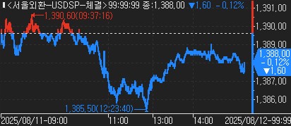 장중 고점은 1,390.60원, 저점은 1,385.50원으로 장중 변동 폭은 5.10원을 기록했다.