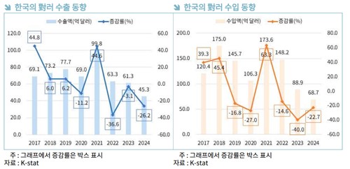 보고서에 따르면 한국의 대러 에볼루션 카지노 사이트은 2021년 100억 달러에서 지난해 45억3천만 달러로 축소됐다.
