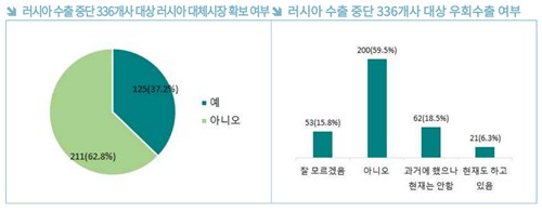 한편 러시아 에볼루션 카지노 사이트을 중단한 이후 대체시장을 확보한 기업은 37.2%에 불과했다. 우회에볼루션 카지노 사이트을 하지 않는 업체도 80%로 여전히 러시아 의존도가 높은 것으로 나타났다.