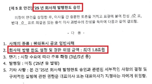 당시 이사회는 발행 금액과 날짜, 금리, 만기 등 세부 사항을 대표이사에게 위임하기로 했다.
