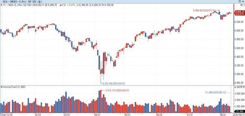 연합인포맥스 지수선물 통합화면(화면번호 6520)에 따르면 한국 시각으로 오전 11시9분 기준 E-미니 S&P500 지수 선물은 전장 대비 0.07% 오른 6,404.25에 거래됐다.
