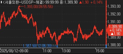 장중 고점은 1,393.00원, 저점은 1,387.90원으로 장중 변동 폭은 5.10원을 기록했다.