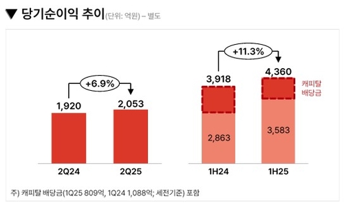 올해 2분기 영업이익은 전년 동기 대비 13.2% 감소한 3천3억원, 당기순이익은 5.2% 늘어난 2천561억원을 기록했다.