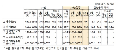 총지출이 총수입을 상회하면서 6월까지 통합재정수지는 68조6천억원 적자를 기록했다.