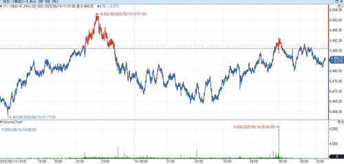 연합인포맥스 지수선물 통합화면(화면번호 6520)에 따르면 한국 시각으로 오전 11시1분 기준 E-미니 S&P500 지수 선물은 전장 대비 0.07% 하락한 6,484.25에 거래됐다.