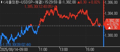 장중 고점은 1,385.30원, 저점은 1,378.30원으로 장중 변동 폭은 7.00원을 기록했다.