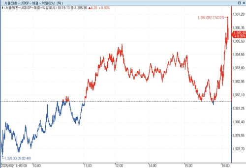 이날 정규장 기준 달러-원 환율은 전장보다 0.30원 오른 1,382.00원에 마감했다.