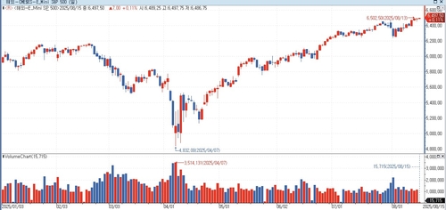 연합인포맥스 지수선물 통합화면(화면번호 6520)에 따르면 한국 시각으로 오전 11시1분 기준 E-미니 S&P500 지수 선물은 전장 대비 0.11% 상승한 6,497.50에 거래됐다.