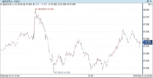 연합인포맥스(화면번호 6411)에 따르면 15일 오전 9시 25분께(이하 미 동부시간) 뉴욕 외환시장에서 주요 6개 통화에 대한 달러 가치를 반영하는 달러인덱스(DXY)는 97.913으로 전장 마감 가격(98.201)보다 0.288포인트(0.293%) 하락했다.