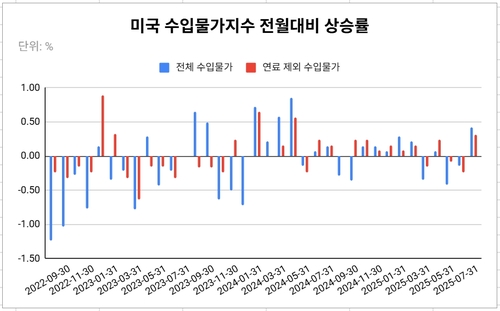 ING의 제임스 나이틀리 국제 수석 이코노미스트는 이날 보고서에서 7월 수입물가지수에 대해 "외국이 (관세를) 지불할 것이라는 (트럼프) 행정부의 주장에 추가로 의문을 던진다"면서 "전반적인 데이터는 지금까지 미국 수입업자들이 관세 부담을 지고 있으며, 결국 어느 시점에는 이것이 재화의 소매가격 상승으로 이어질 것임을 시사한다"고 말했다.