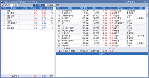 추천종목의 누적 등락률은 인포맥스 화면 '증권사 추천종목 현황(화면번호 3080)'을 통해 실시간으로 확인할 수 있다.