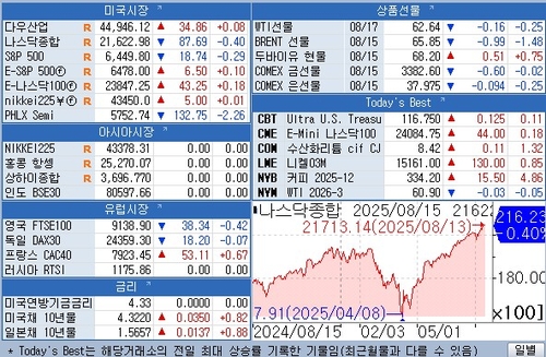 △뉴욕 증시는 혼조세 마감. 7월 미국 소매판매가 무난하게 나온 가운데 도널드 트럼프 미국 대통령이 반도체 관세 계획을 곧 발표한다고 밝힌 여파로 기술주가 하락.