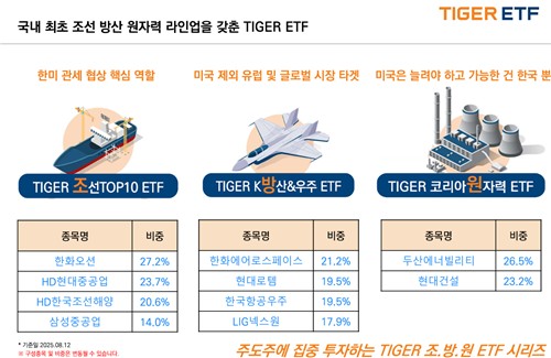 이로써 미래에셋운용은 방산과 조선에 각각 투자하는 TIGER K방산&우주 ETF와 TIGER 조선TOP10 ETF까지 이른바 '조방원' 테마형 상품을 모두 출시한다.